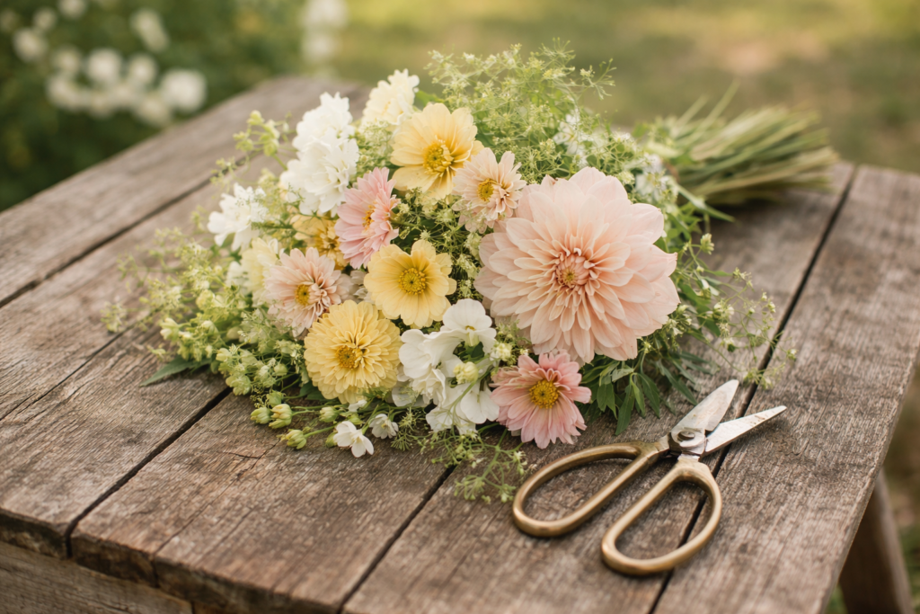 “Itsepoiminta oli ihana kokemus. Kukkien monipuolisuus ja kauneus yllättivät, ja oli erityisen merkityksellistä poimia kotimaisia, lähikukkia suoraan pellolta. Jokainen kimppu tuntui ainutlaatuiselta.”